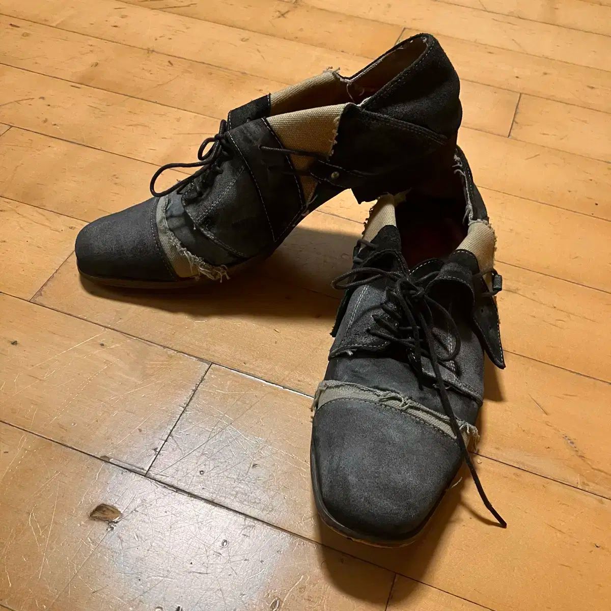 -靴のアッパー特有のグランジ加工とウィングディテール、そしてロングノーズシェイプがPOINTの希少アイテム。