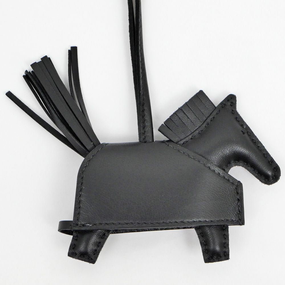 名東 エルメス ロベオロックPM ロデオ ブラック シルバースタッズ K刻印 バッグチャーム レザー 革小物