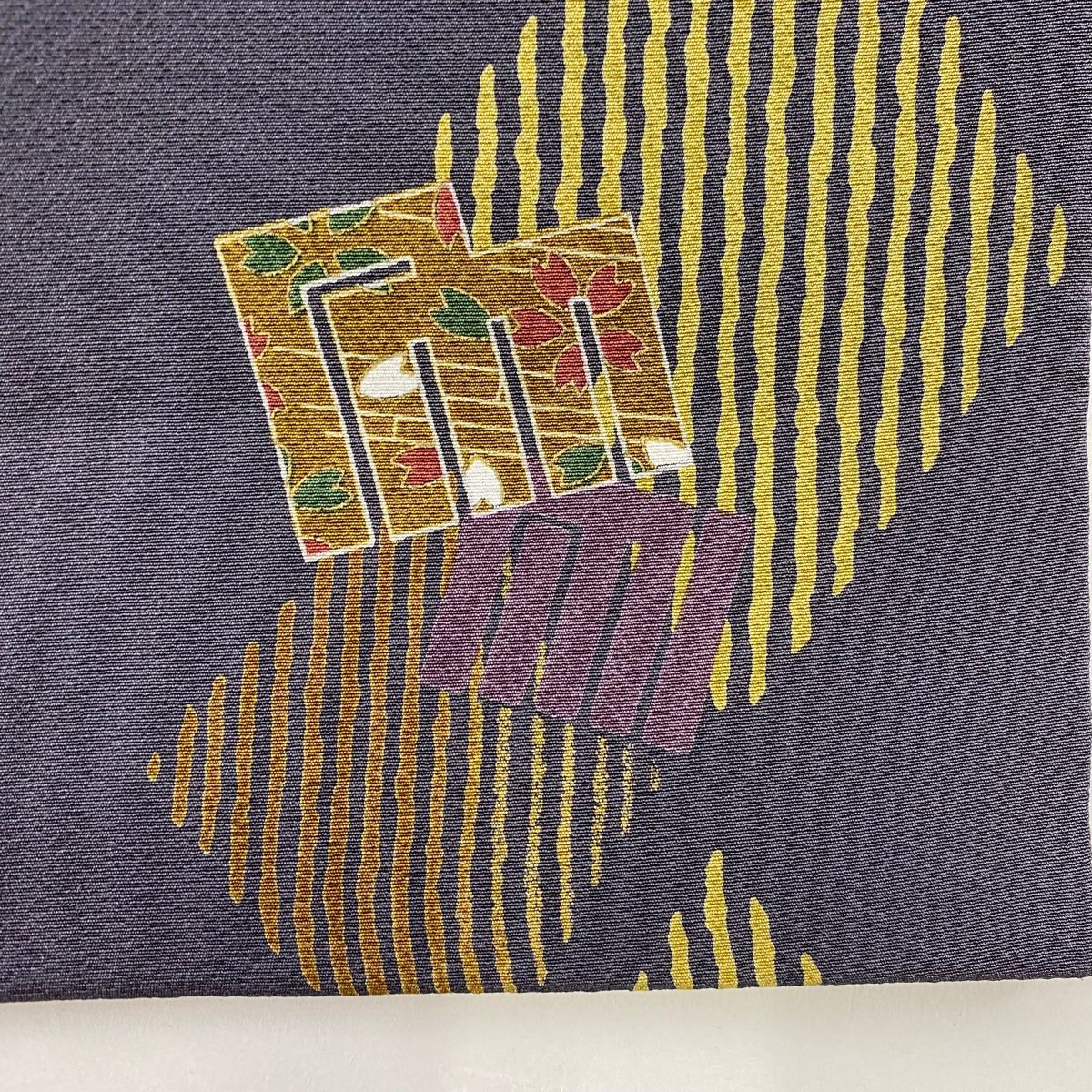 名古屋帯 秀品 源氏香 縞 金彩 紫 正絹