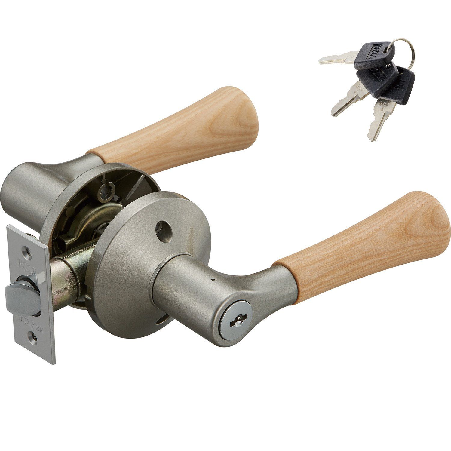 マツ六(Mazroc) レバー錠 エクレ 兼用取替バリアフリーレバー錠 鍵付間仕切錠 EL5060-35MW-NSNC Nシルバー+Nクリア 木製レバー