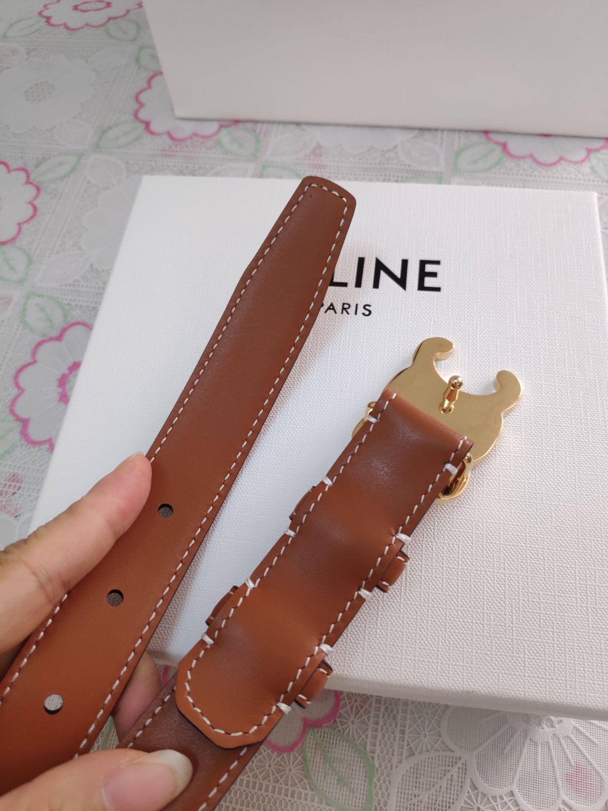 Celine セリーヌ ベルト トリオンフ レザーベルト 金色金具 男女兼用✜