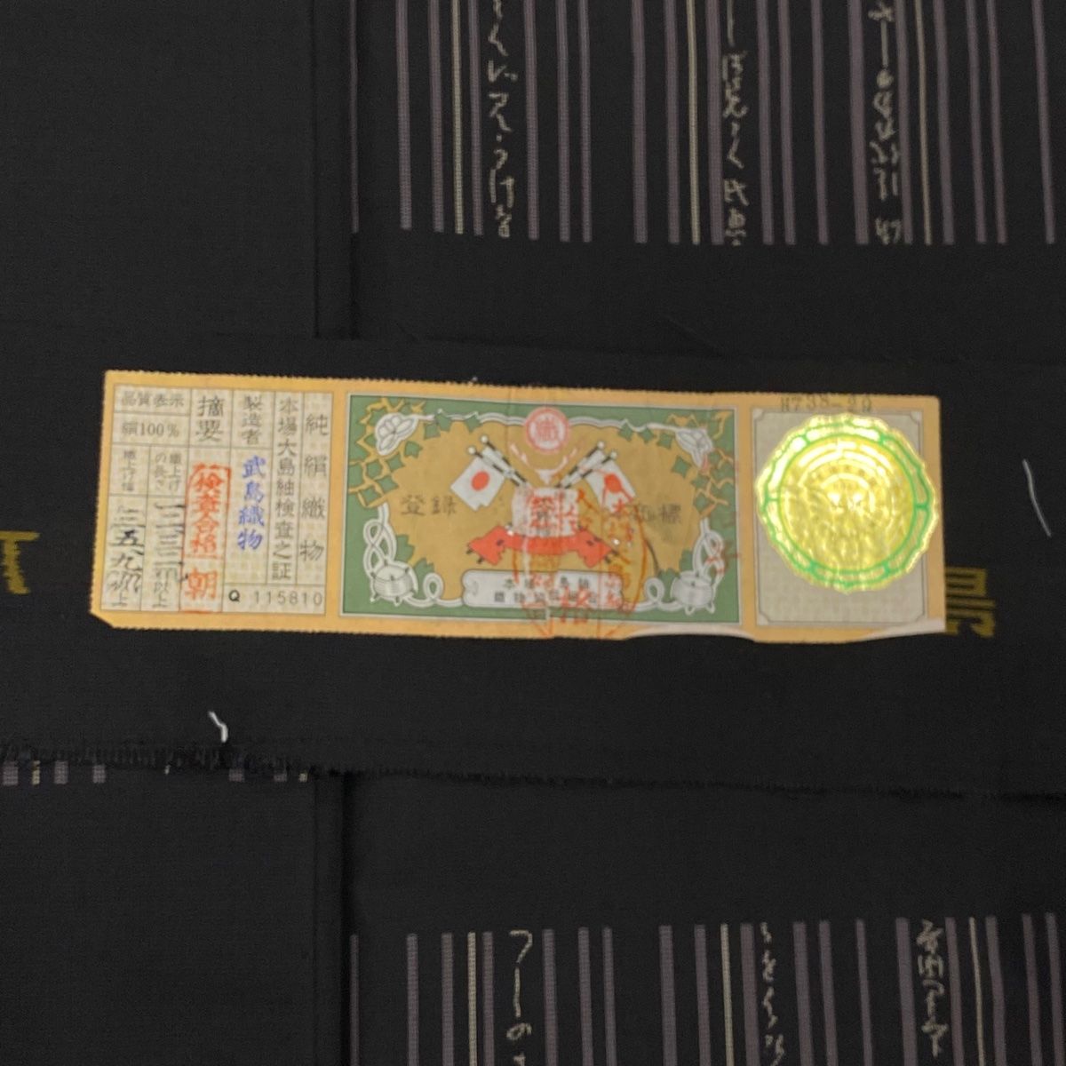 付下げ 身丈158 cm 裄丈62.5 S 袷 大島紬地 証紙 縦縞模様 文字文 墨色 正絹