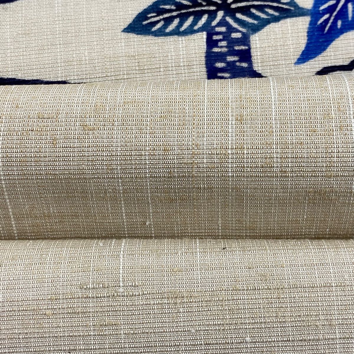 名古屋帯 本場琉球びんがた 野蚕紬 家屋 樹木 灰白 正絹