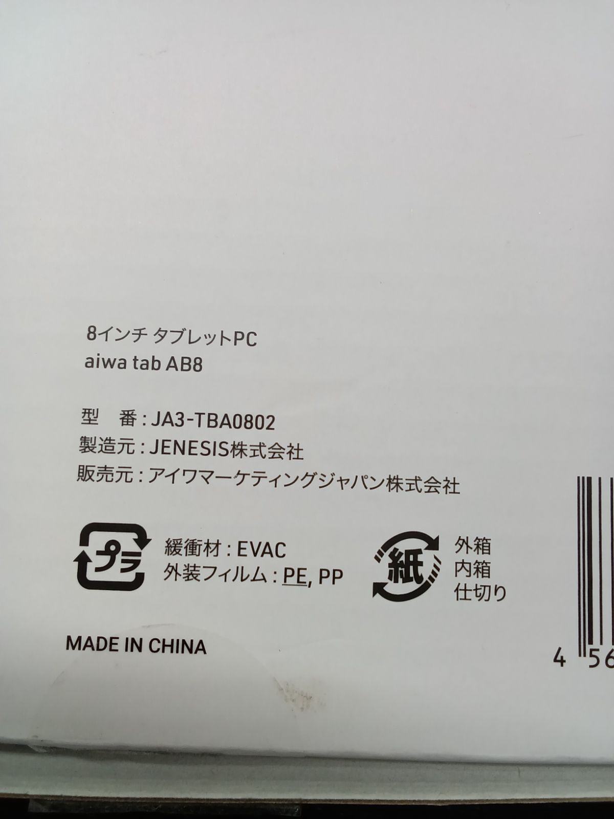 〇 aiwa アイワ android 12搭載 8インチタブレット