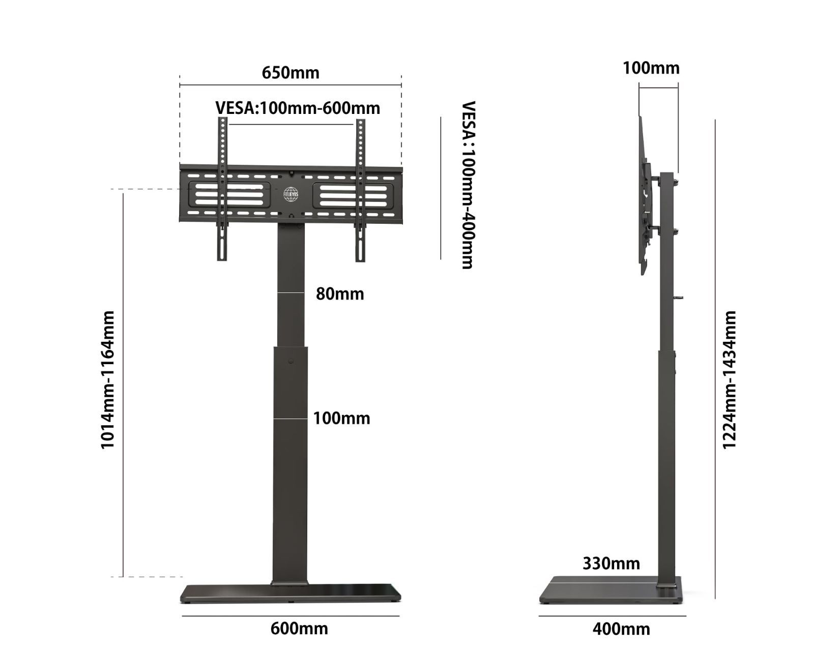 【VESA規格対応】汎用性の高いVESA規格(テレビ背面のネジ穴間の距離)対応、最小限は100×100mm、最大限は600×400mmです。当製品が32~65インチのテレビやモニターに適応します。
