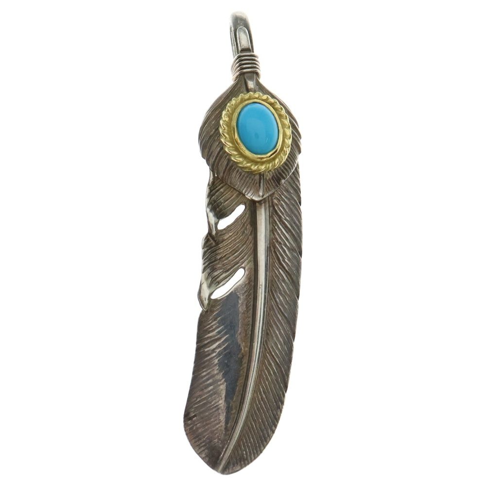 【品名】特大ハートSVフェザー金縄ターコイズ ペンダントトップ シルバー/ゴールド