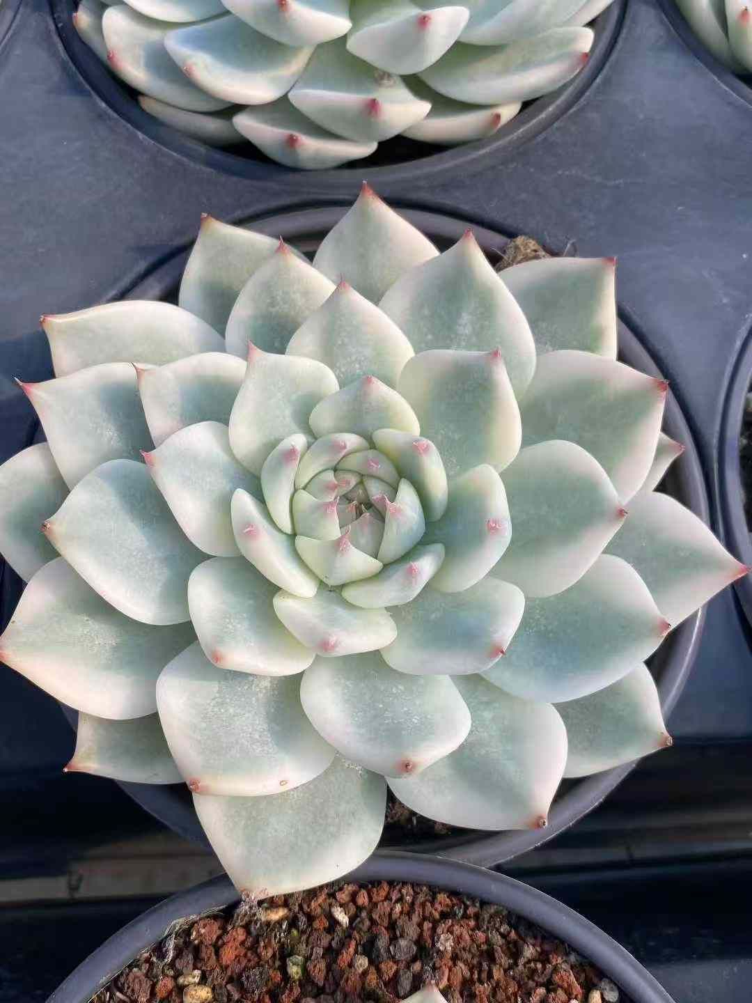 柔らかな光を浴びて輝く、エケベリア特有のロゼットが美しい多肉植物です。