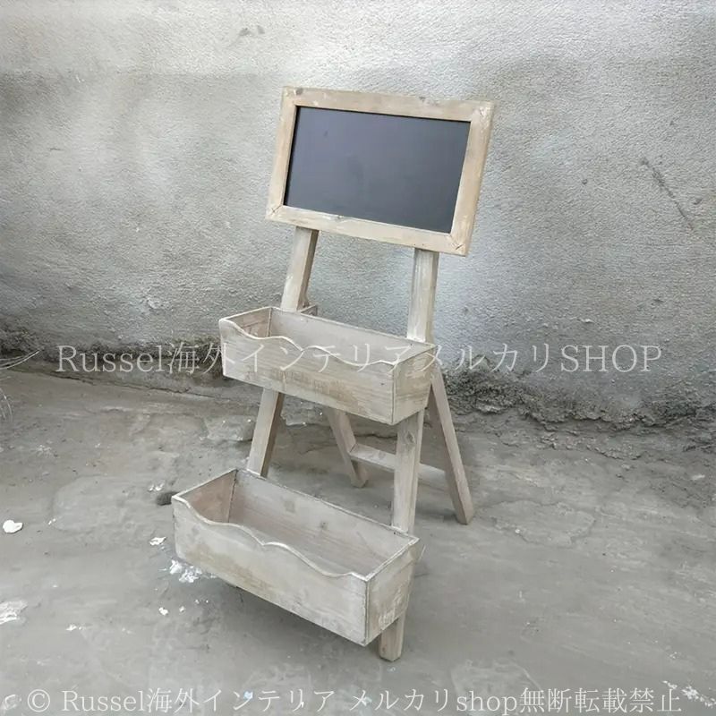 プランター 木製 ホワイト ヴィンテージ調 黒板付き シャビーシック カフェ 2段 ガーデニング 雑貨 ガーデン雑貨 ガーデンインテリア ガーデン インテリア 庭の装飾 お洒落 おしゃれ 4-7