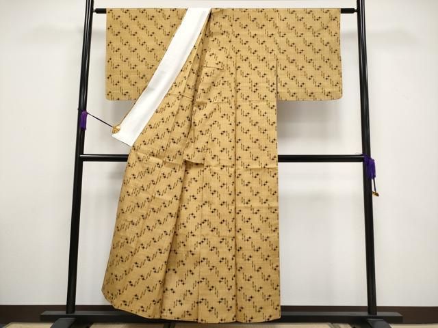 平和屋着物 上 国指定重要無形文化財 本場久米島紬 手織 単衣 黄土色地 s 5