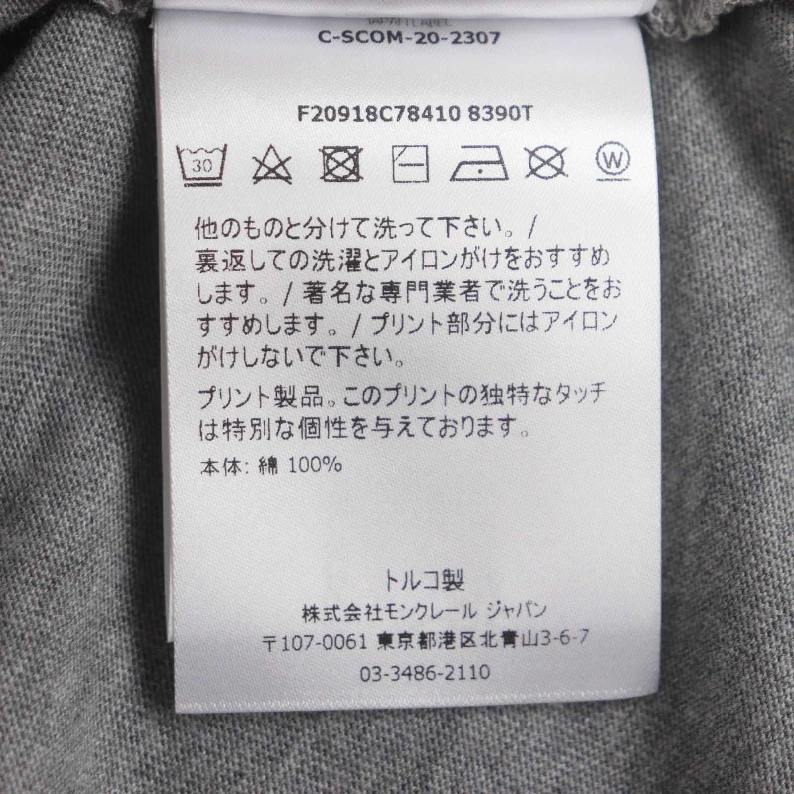 MONCLER モンクレール 21 SS コットン ロゴプリント クルーネック ショートスリーブ 半袖Tシャツ グレー S メンズ