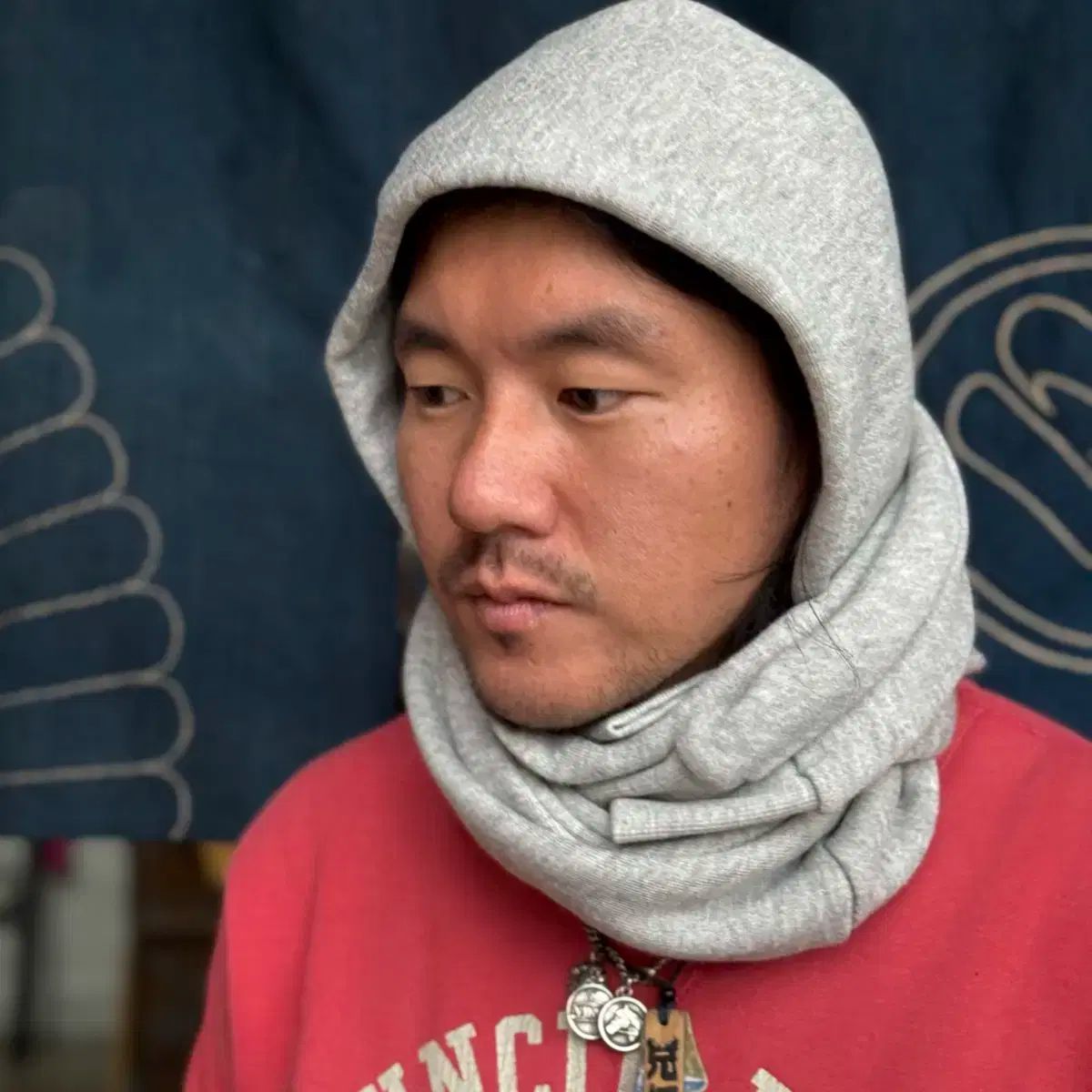 フードを被り、スウェットシャツの袖のように製作された部分を個人の好みに合わせて活用できますが、これを首に巻いて仕上げることによって、まるでバラクラバのように活用できます。