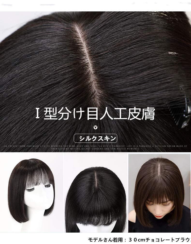 女性用 つむじ かつら 超リアル 医療用 フルウィッグ 前髪 人毛100% 自然 ボブ 通気 ウィッグ 分け目シルクスキン 30 cm黒色 HIYE