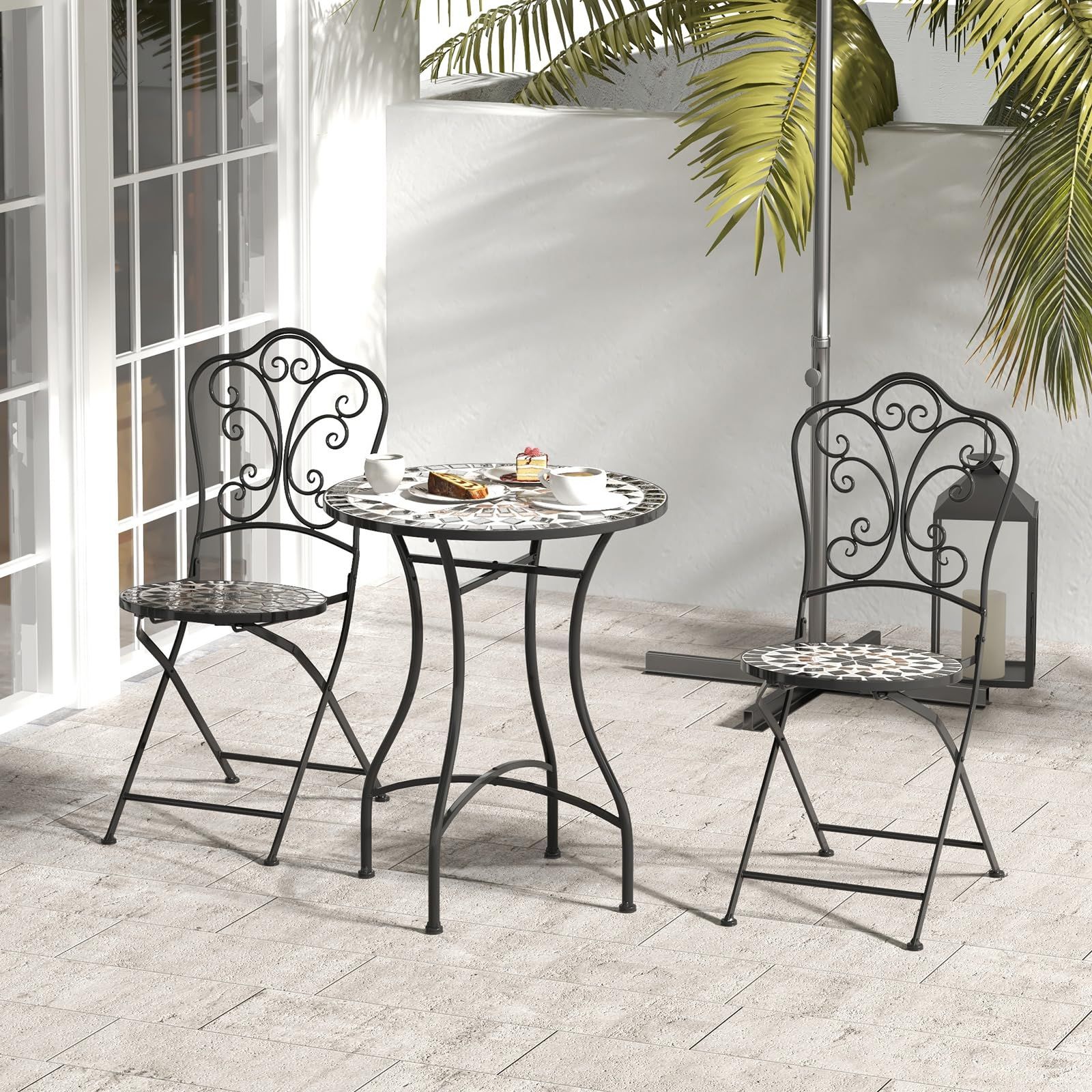 TANGKULA ガーデンテーブル 直径60cm 耐荷重50kg タイルテーブル 防水 モザイク柄 アンティーク調 机 庭 パティオ テラス アウトドア ベランダ 屋外 屋内 アイアン製 おしゃれ 組立簡単 ブラック