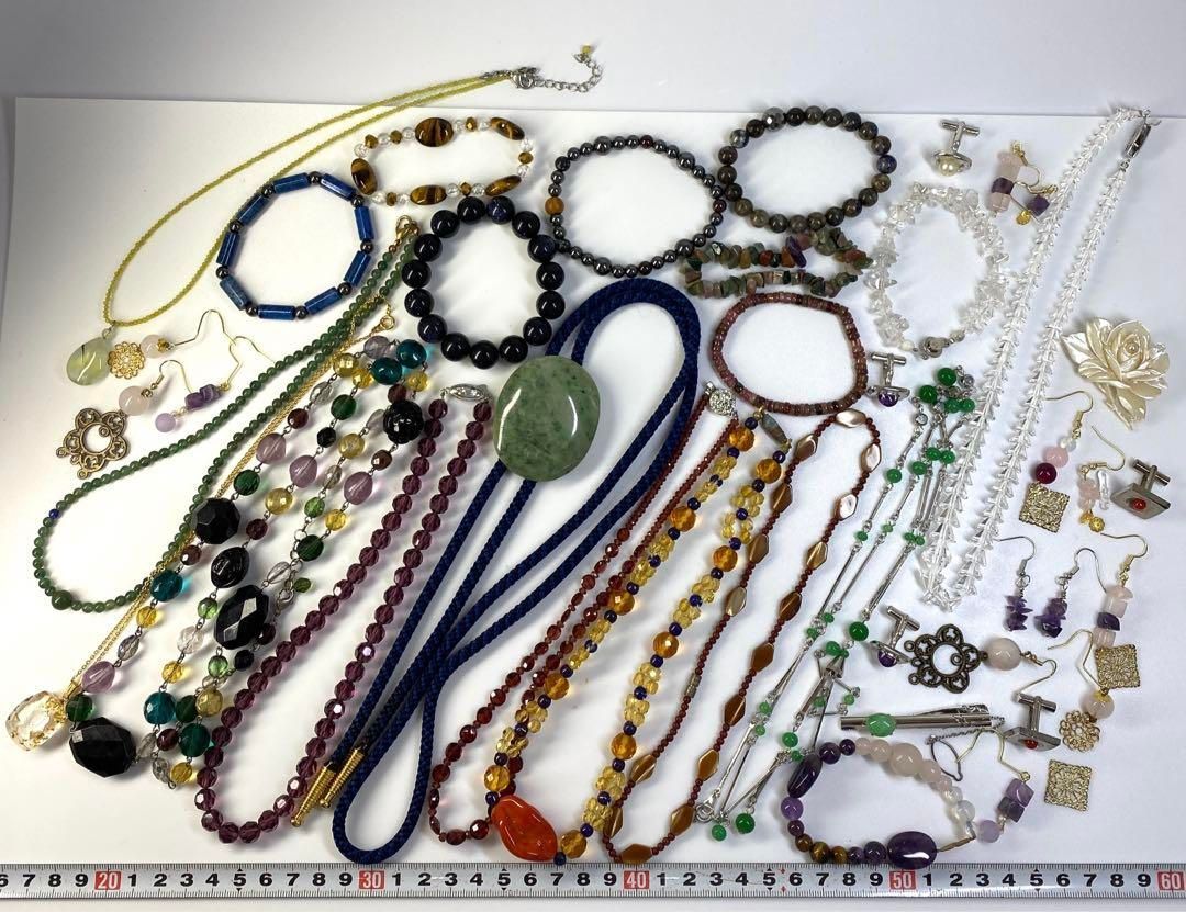 本翡翠 ネックレス ループタイ 水晶等 529 g 東な6-0721ア㉑