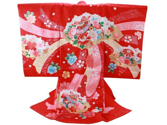 お宮参り 金彩加工 正絹 着物 長襦袢 セット 女児 女の子 子供 産着 祝着 赤色 un-233