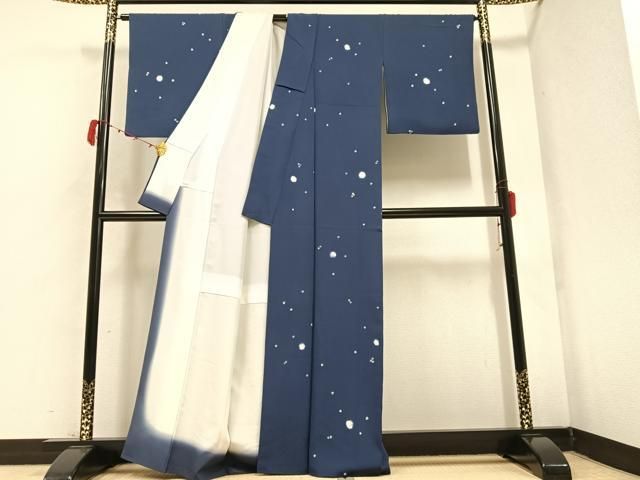 平和屋着物 上質な小紋 藍 絞り 霞文 暈し染め 正絹 ph