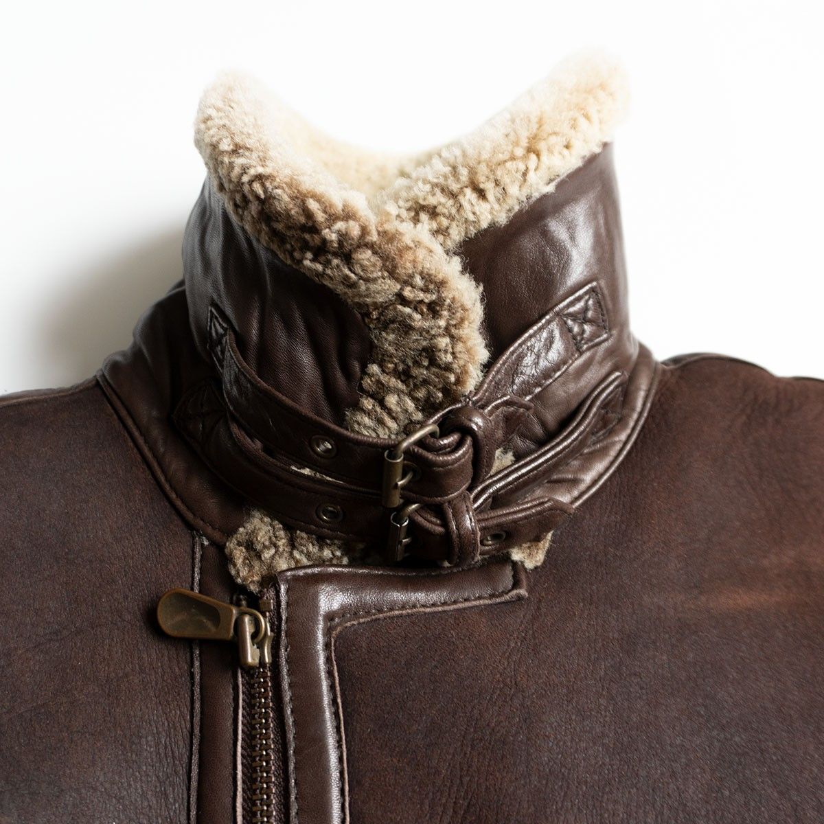 ボディには肉厚ながらモチっとした弾力性を持つ上質のシープスキン(羊革)が使用されております。裏地にはふかふかのムートンボアが敷き詰められ最高の着心地・防寒性を誇ります。