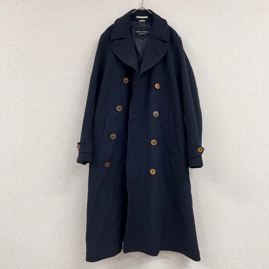 COMME des GARCONS HOMME PLUS コムデギャルソンオムプリュス 2017 ねじれ トレンチコート 捻れ ポリ縮絨 ロング ネイビー S