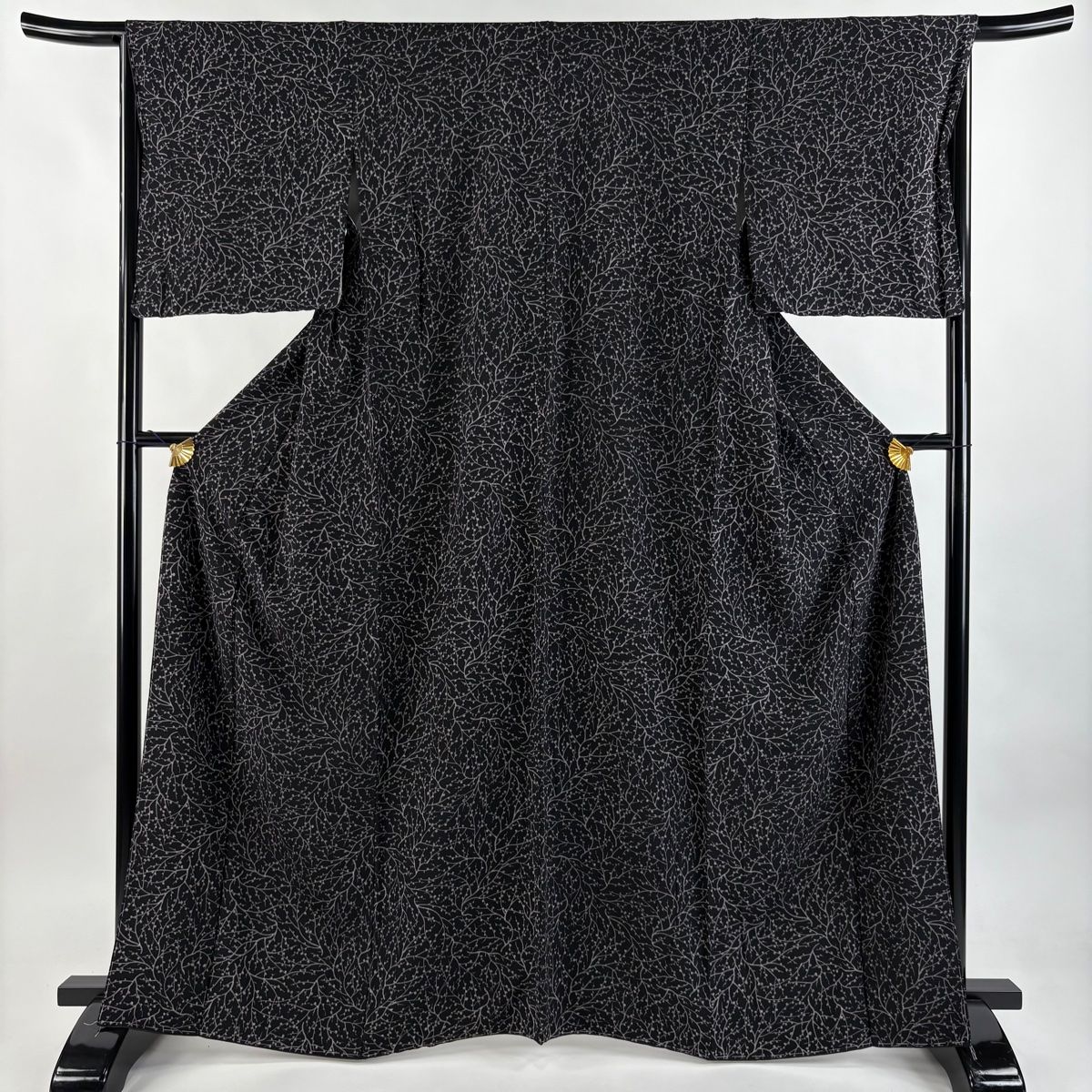 小紋 身丈165 cm 裄丈67 M 袷 枝 蕾 黒 正絹 秀品