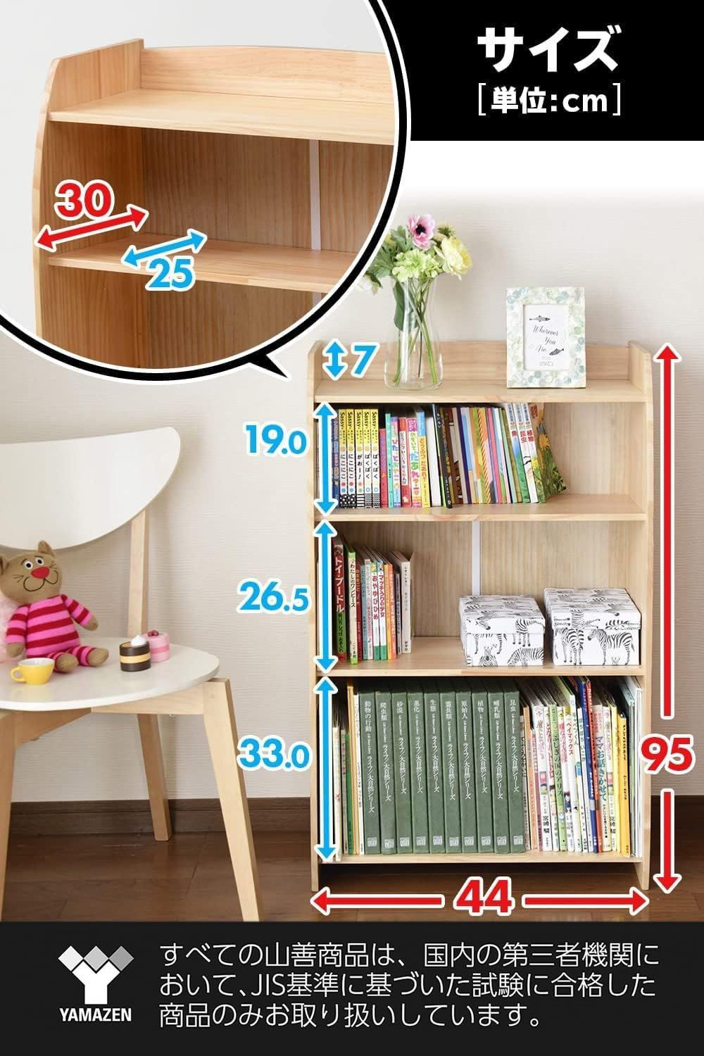 [山善] 絵本棚 絵本ラック (大容量) 倒れにくい(後ろ重心設計) 収納高さ3種類 固定棚(安定感アップ) 丸みのある角 幅60×奥行30×高さ95㎝ 天然木 組立品 ナチュラル TER-9560(NA)