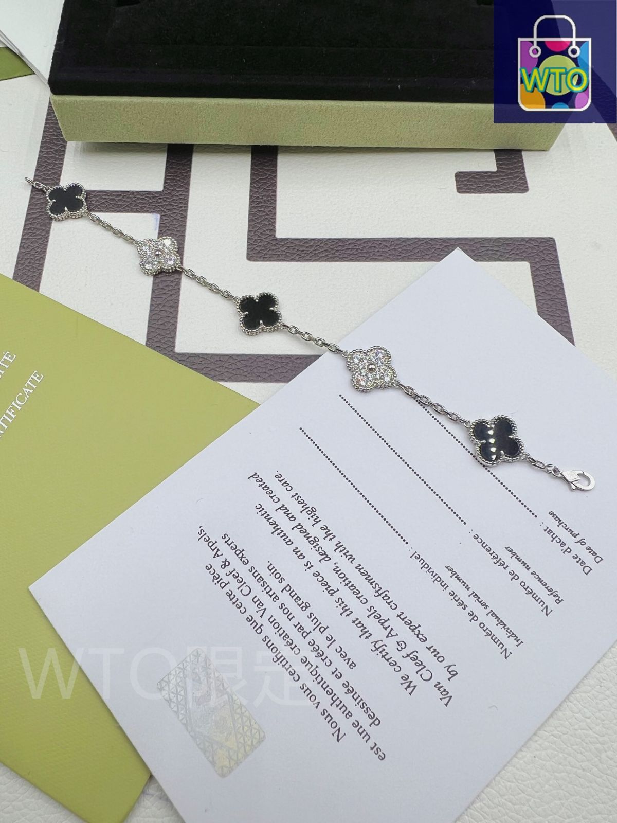 Van Cleef - Arpels ヴァン クリーフ&アーペル 四つ葉のクローバー ブラック カルセドニー スペーサー ダイヤモンド ファイブフラワー ブレスレット パンダ ブレスレット| | ♥-WTO輸入1