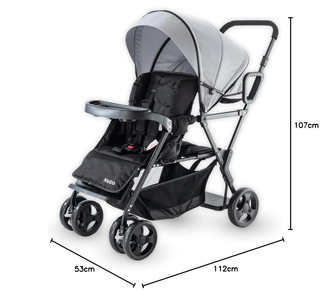 在庫 2人乗りサイズでもコンパクト 二人乗り 2人乗り ベビーカー 軽量 折りたたみ ドリンクホルダー 大型幌 小回り 2歳半 3歳 4歳 双子 兄弟 姉妹 アミティエF ネビオ Nebio