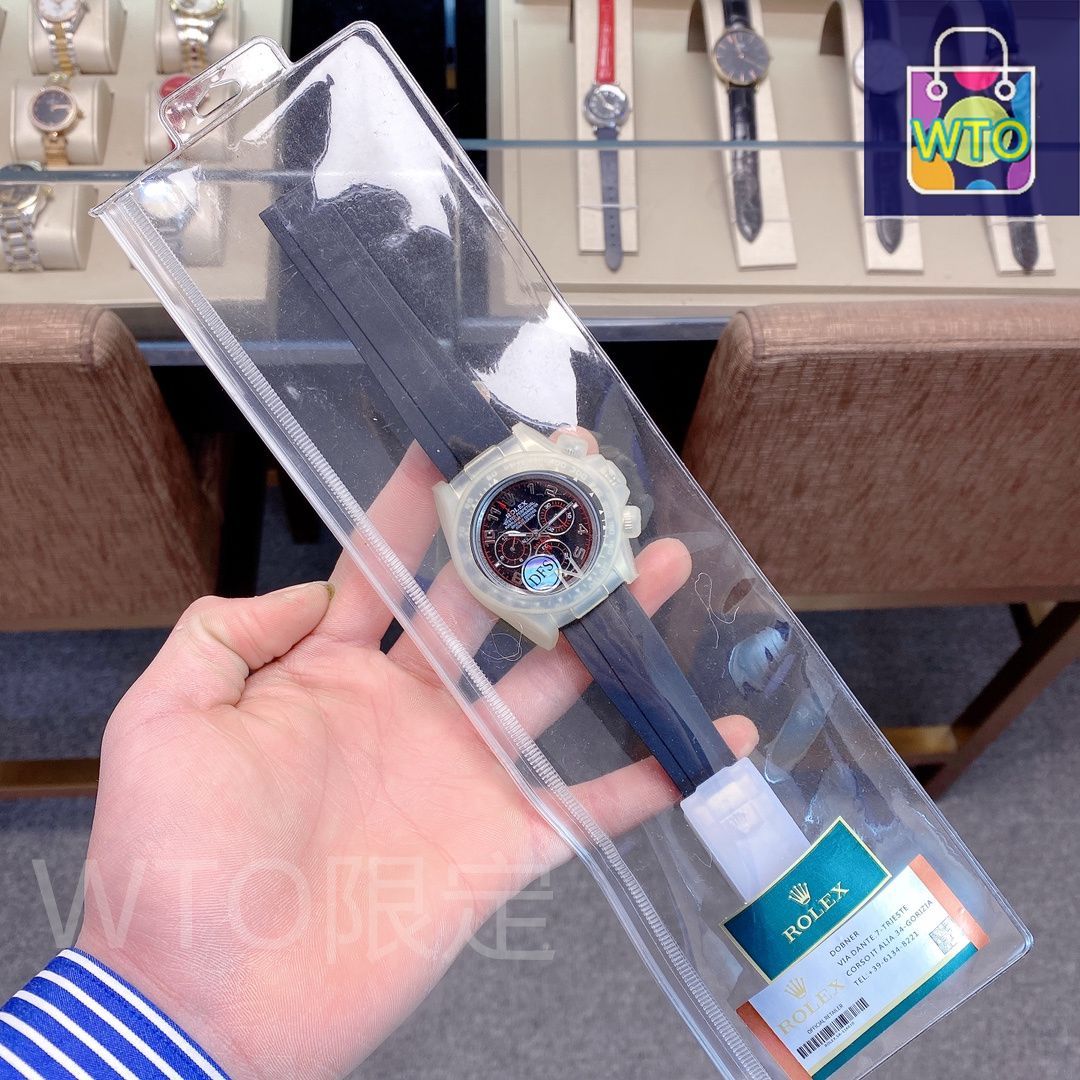 当店では、ロレックス 宇宙計型 迪通拿系列の腕時計をご紹介いたします。この腕時計は、販売促進のためのアップグレードバージョンで、ボタンとケースにはゴムカバーが付属し、フルセットのパッケージで提供されます。保証カードも付いております。