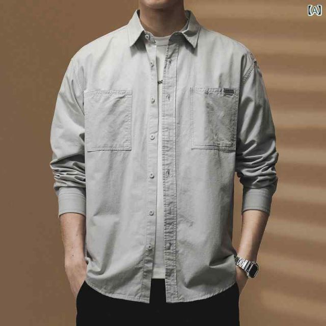 2 XL メンズ ファッション 服 オシャレ シンプル 大人 かっこいい 大きいサイズ ストリート 紳士服 レトロ カジュアル 長袖 シャツ 春秋 綿 ウォッシュド ワーク