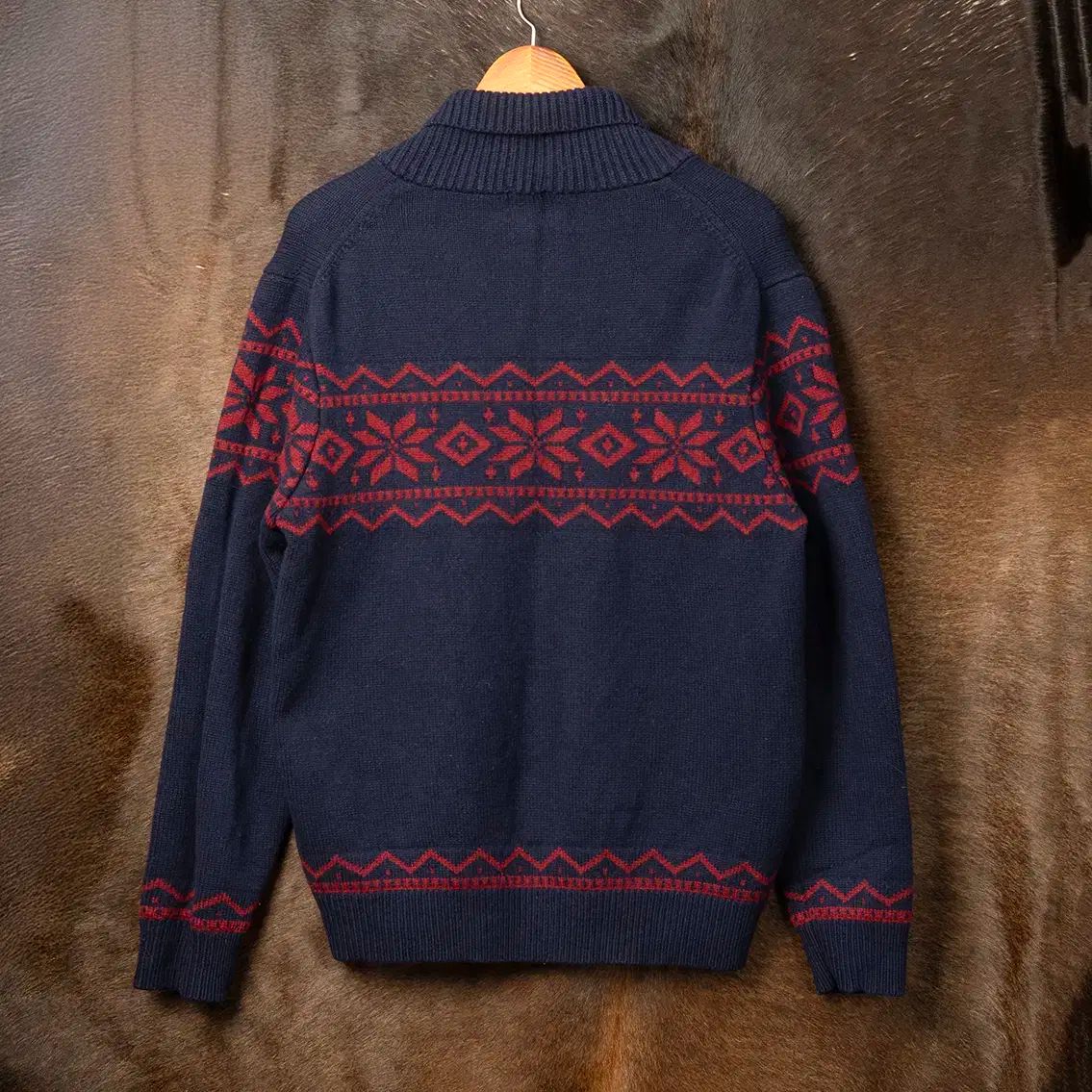 ネイビー+レッド COLOR の 目+ノルディック パターン ディテールが 特徴です。