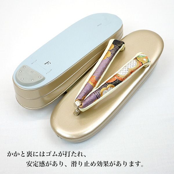 鼻緒にも帯地は使われ、足元も華やかに演出いたします。しっかりとした二枚芯作りです。