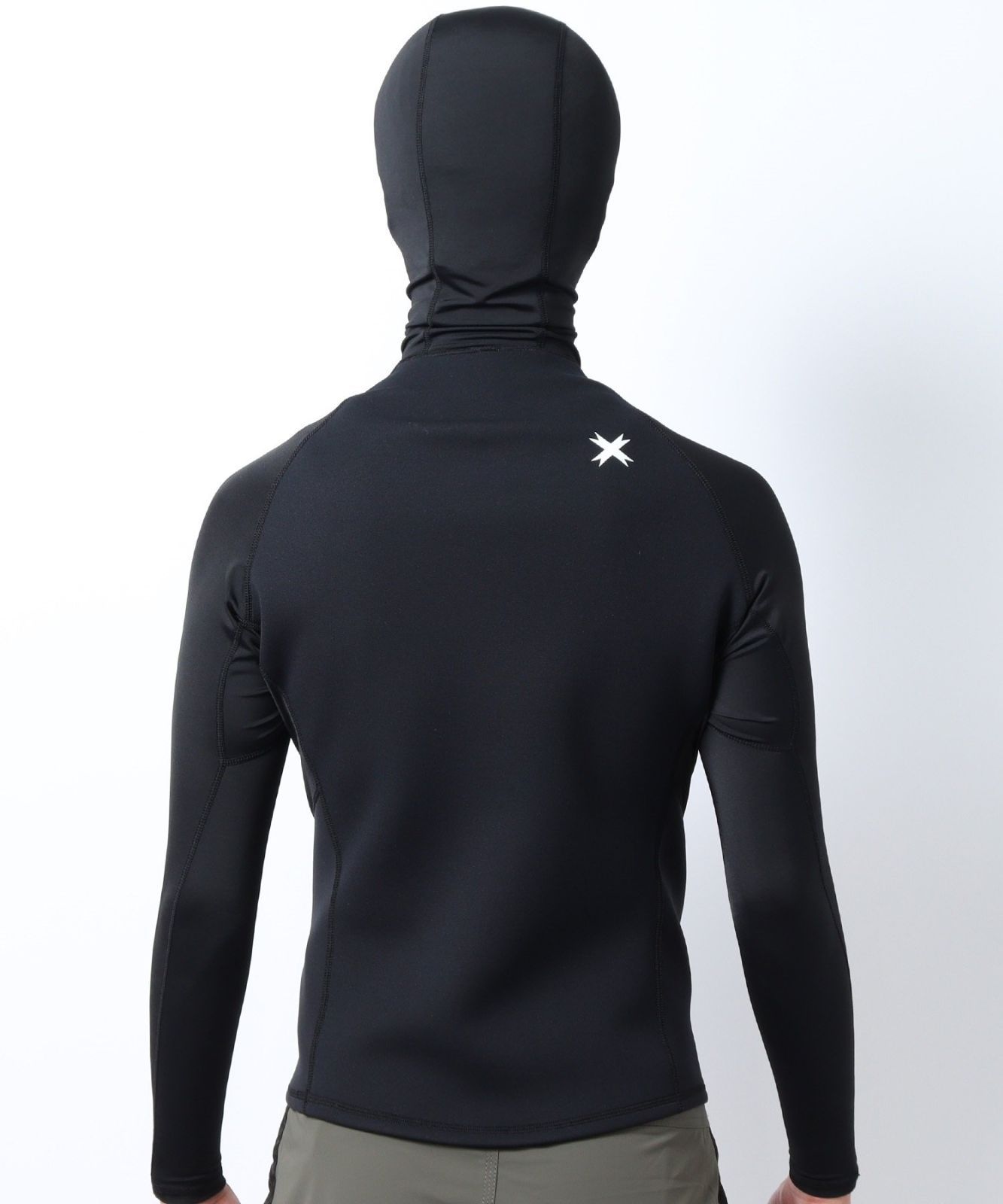 フードを装着する事で、夏の強い日差しから頭皮や肌を守ります。