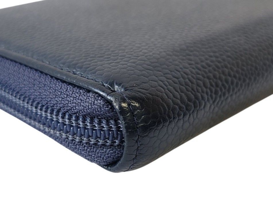 シャネル キャビアスキン ココマーク デカココ ラウンドファスナー長財布 ネイビー CHANEL