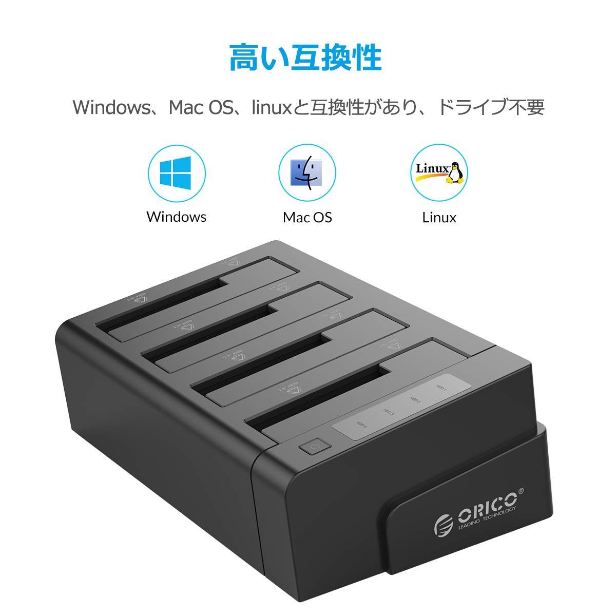 工具不要 ハードディスクケース 4ベイ 10 TB 4台対応 対応 HDD SSD SATA 電源アダプター付 3.5インチ ブラック 2.5 クローン機能付き HDDケース 6648 US 3 USB 3.0 ORICO