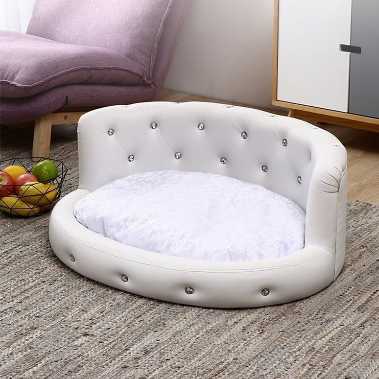 きらきら輝く姫系デザインのペットソファ。ピンク、ホワイト、ブラックの3色展開で、SサイズとMサイズの丸型があります。可愛らしいデザインだけでなく、高品質の素材で作られているので、快適な寝心地が保証されています。