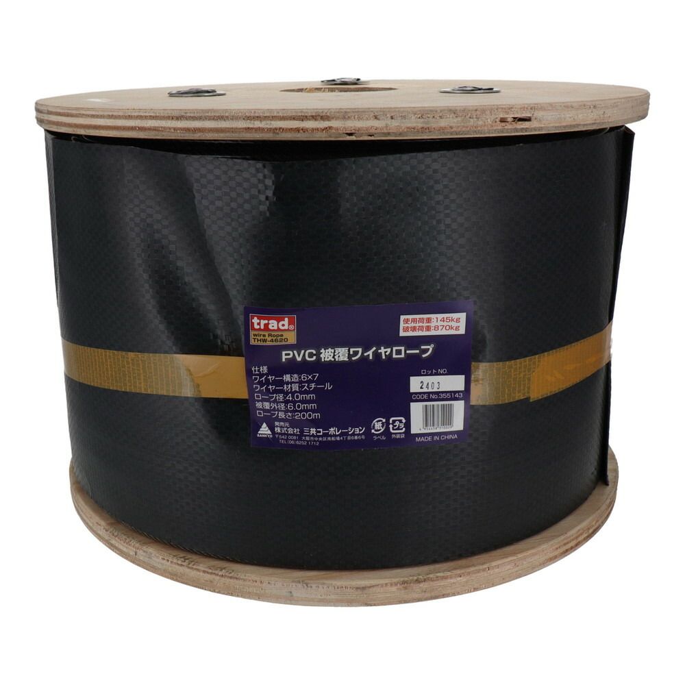 三共コーポレーション trad PVC被覆ワイヤ 200m巻 THW-4620 355143