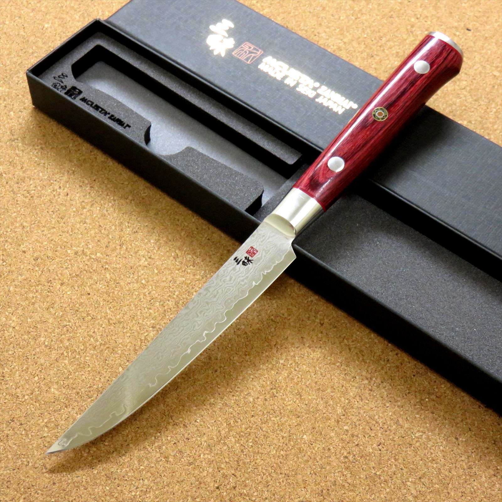 関の刃物 ステーキナイフ 11 5 cm 115 mm 三昧 クラシック プロ 紅蓮 ダマスカス 33層鋼 VG 10 赤合板 両刃 最 テーブルナイフ