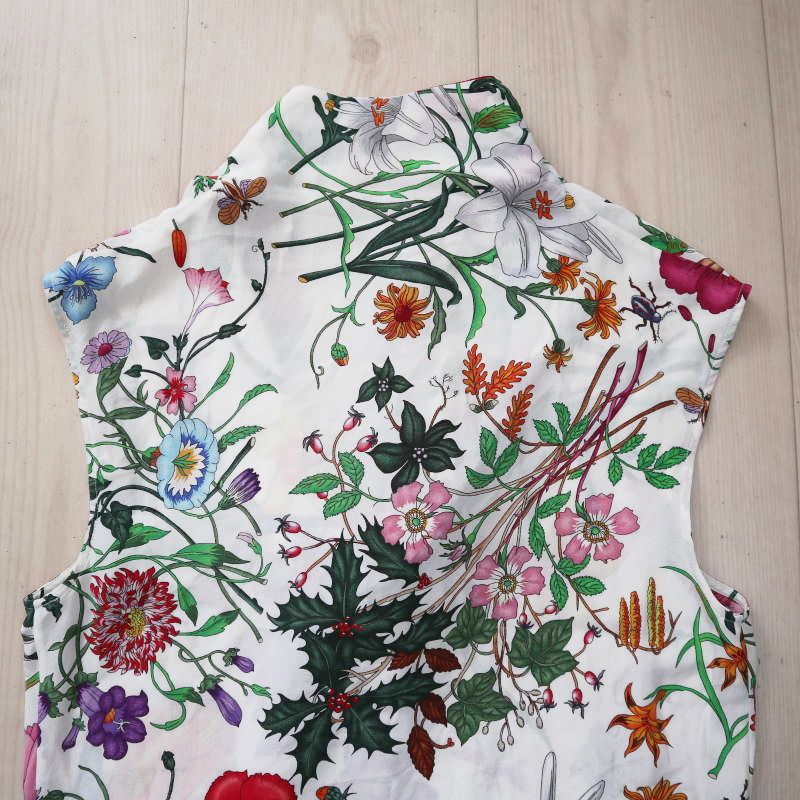 GUCCI グッチ フローラル フラワー柄 シルク ノースリーブ 38 マルチカラー M 09-k 025