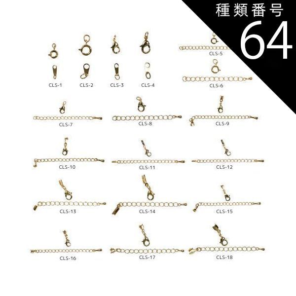 種類64 ロジウム CLS 11 金具セット CLSシリーズ 全18種類 カニカン 引き輪 ダルマ板 アジャスター エンド金具 真鍮製 生地 メッキなし ゴールド アンティークゴールド
