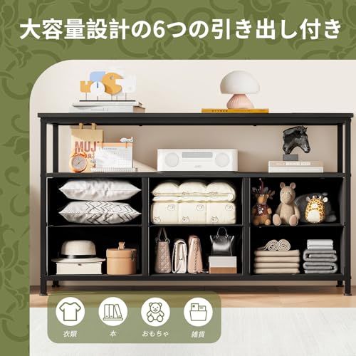 大 32 55インチテレビ対応 ×68 cm 6引き出し付き収納キャビネット ブラック 木製 テレビボード 大容量収納 ローボード 耐磨 高耐荷重 tv台 省スペース おしゃれ テレビ台