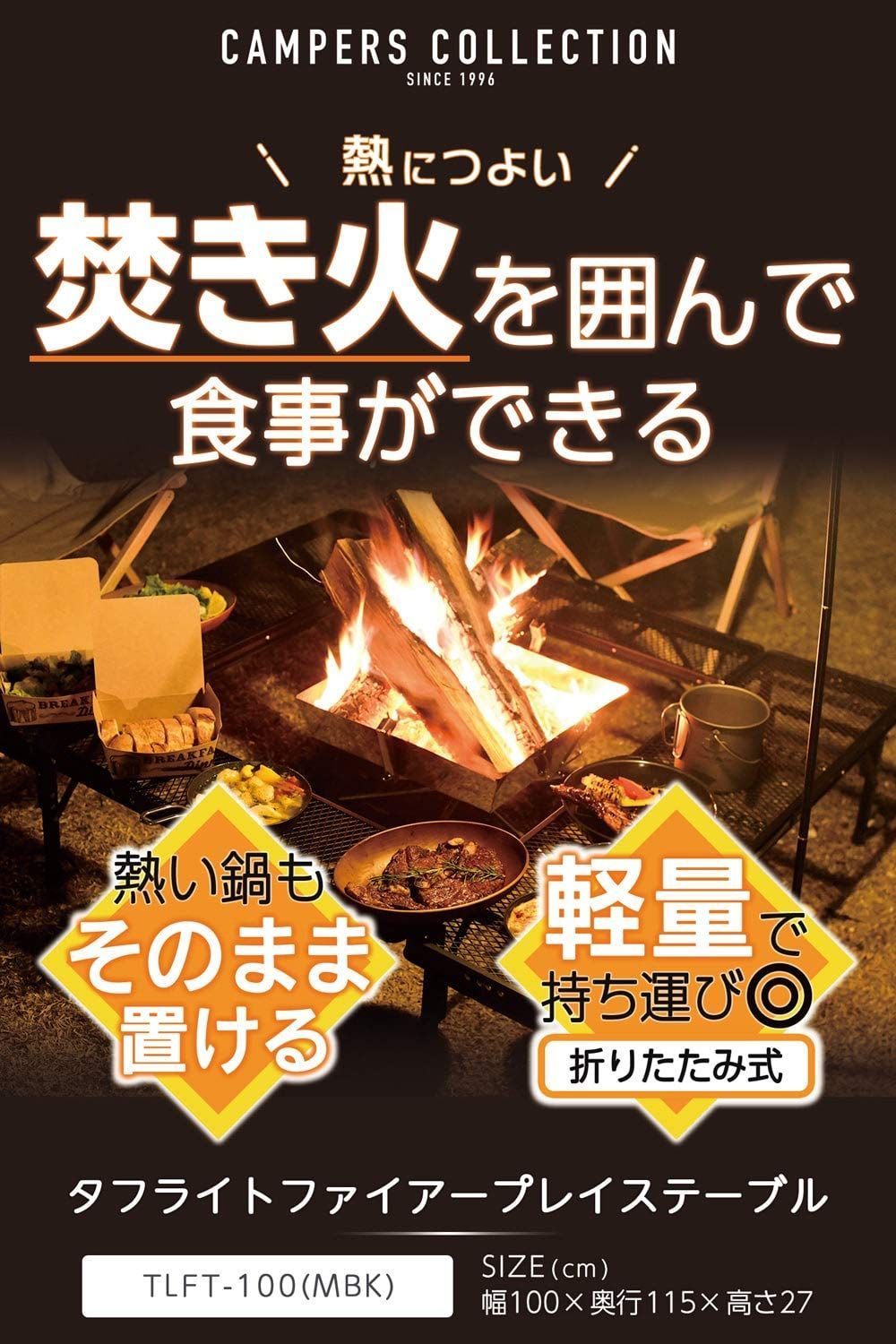 [山善 キャンパーズコレクション] メッシュテーブル (キャンプ アウトドア) 熱・水に強い 折りたたみ式 軽量 (焚火 バーベキュー) タフライト ファイアープレイス テーブル TLFT-100/ BBQ タフライトテーブル TLT-1280B