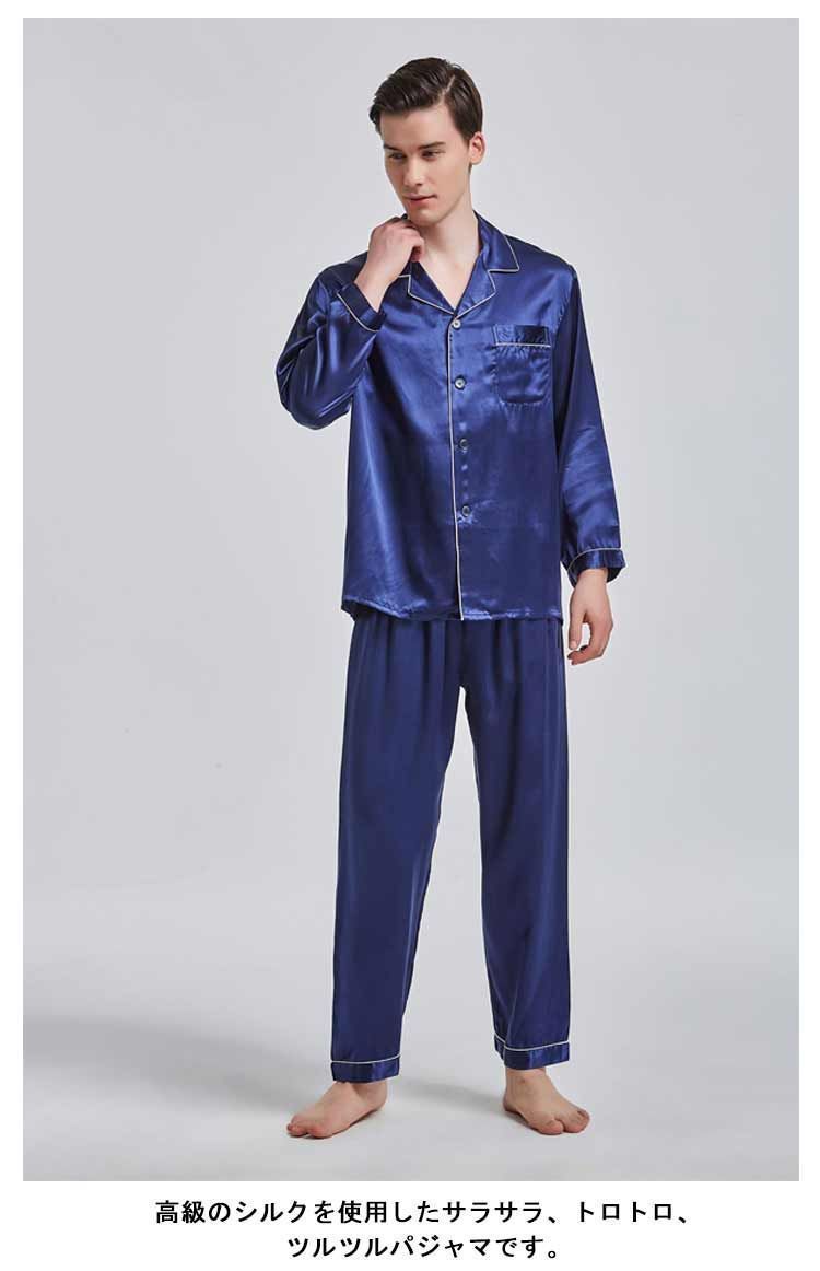 前開き シルク 快眠 パンツ メンズ 長袖 パジャマ シルクパジャマ ナイトウェア 寝間着 ルームウェア 敏感肌 セットアップ 部屋着 ロング 彼氏 敬老の日 ギフト プレゼント L uokd 986