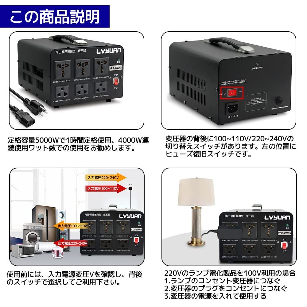LVYUAN リョクエン 5000 VA 海外 両用型変圧器 アップトランス ダウントランス 降圧 昇圧兼用型 変圧器 ポータブルトランス 海外機器対応 W 100 V 110 220 240 自由変換 VTJP