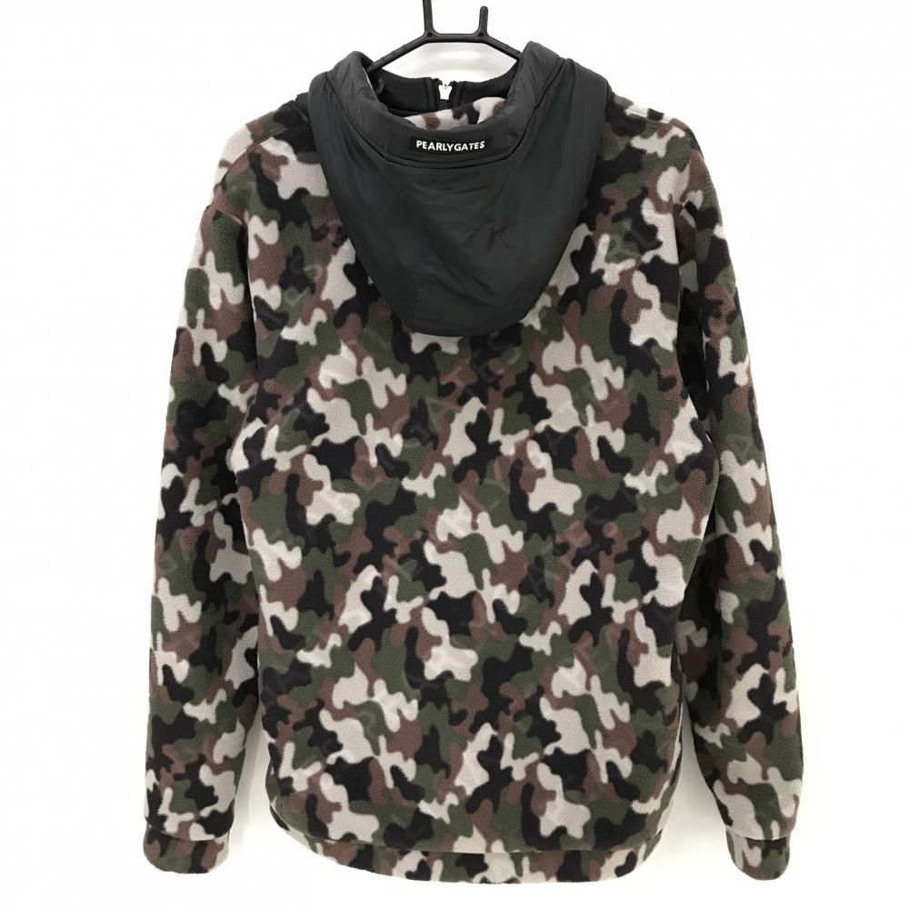 超 パーリーゲイツ フード付フリースジャケット ダークグリーン×ブラウン×黒 迷彩 メンズ 5 L ゴルフウェア PEARLY GATES