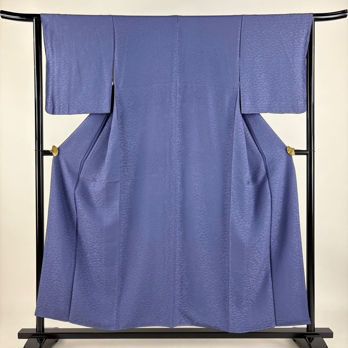 色無地 身丈153 cm 裄丈64 M 袷 地紋 青紫 正絹 一つ紋