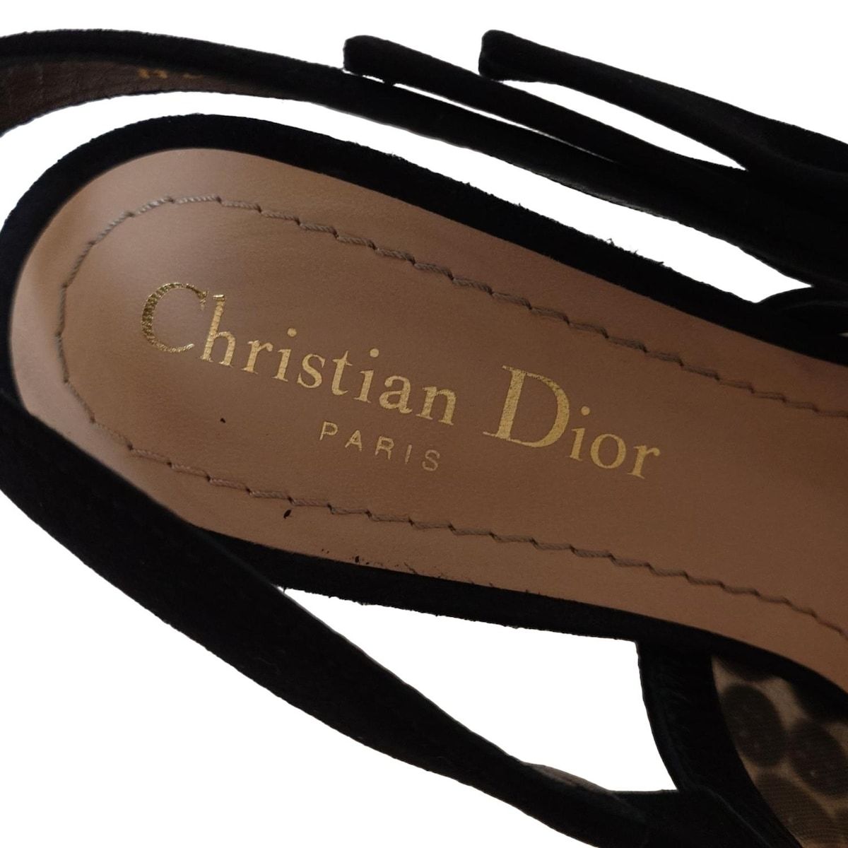 DIOR ChristianDior ディオール クリスチャンディオール サンダル 36 レディース - 黒 メッシュ ラインストーン リボン
