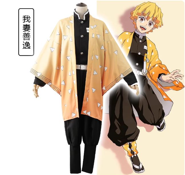 鬼滅の刃 我妻善逸 コスプレ衣装セット 鬼殺隊隊服 羽織 ウィッグ付き