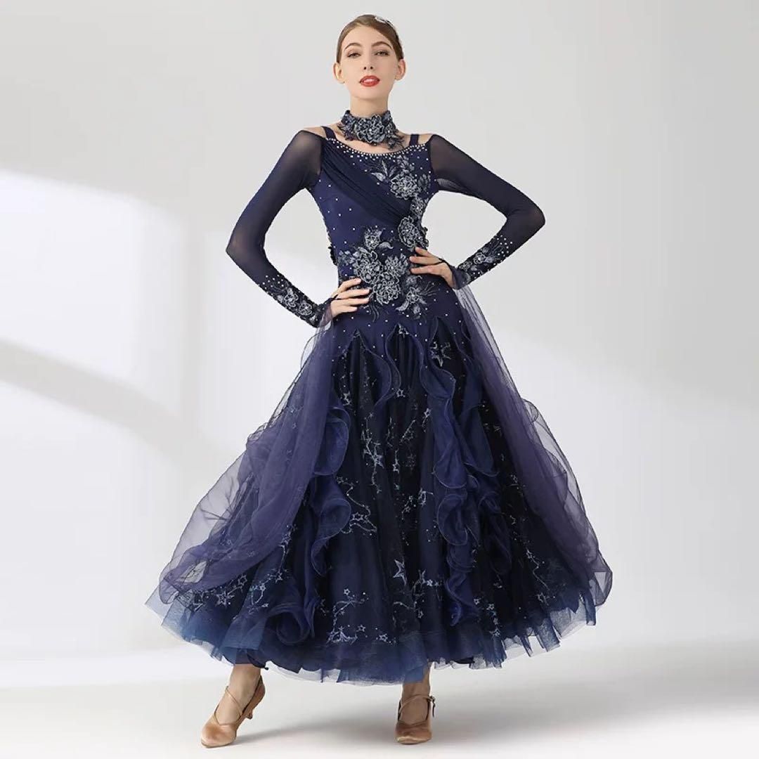 特別な日に華やぎをプラス!競技会や発表会に最適な星柄スタンダードドレス。エレガントなデザインがステージで輝きを放ち、デモンストレーションでも注目の一点。自信を持ってお召しください。