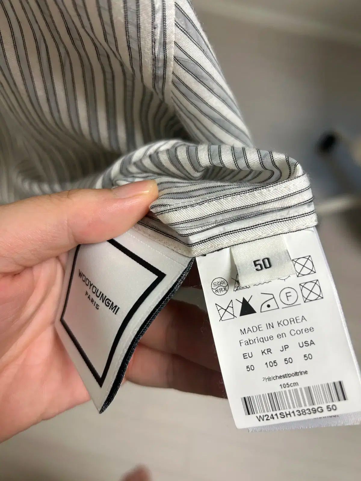 写真のように、24SSWOOYOUNGMI (ウーヨンミ) のシースルーストライプシャツを販売しています [50]。