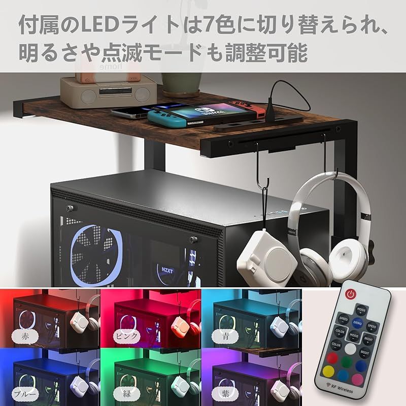 LEDライトとコンセント付き: ラック自体にこれらの機能が備わっているので、デスクをより効率的になる。LEDライトは色変えのため、ゲームルームの雰囲気をさらに盛り上げます。また、コンセント付きで、周辺機器の電源管理もできる。デスク周りの照明や電源を簡単に接続できる。
