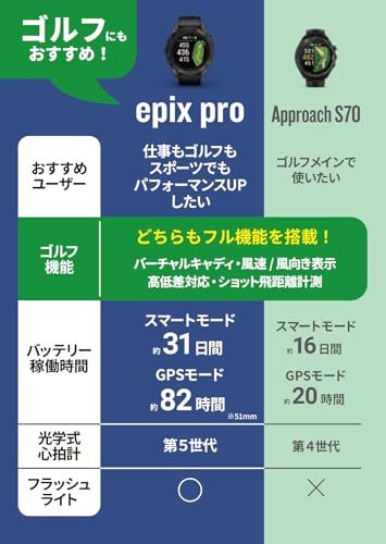 ガーミン(GARMIN) epix Pro 51mm Sapphire Ti Carbon Gray DLC/Black【日本正規品】心電図(ECG)アプリ対応モデル